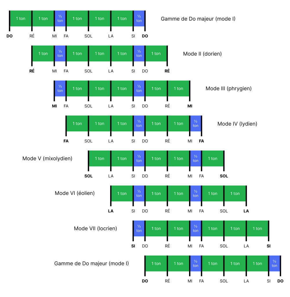 D’après Russell, le mode lydien est le mode qui contient la plus grande stabilité musicale. En déployant le mode lydien selon une suite de quintes, les sept notes du mode aboutissent à la quarte augmentée (Fa dans le ton de do). Le do n’est plus la fondamentale, mais « le centre de gravité tonal » (CGT), parce qu’il représente l’élément le plus stable du mode.